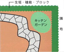 A 園路でゾーンを仕切る。(通り抜けの使い勝手がよくなる)